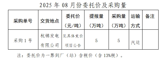 內(nèi)蒙古能源集團有限公司計劃對所屬杭錦發(fā)電有限公司2025年8月市場煤采購進行電子專場交易,交易信息現(xiàn)對外公開發(fā)布,凡符合條件的交易商均可參加。