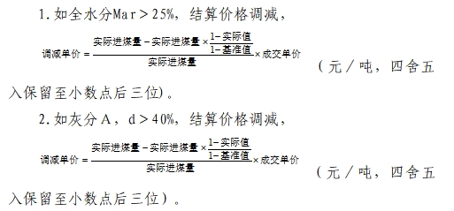 (4)如化驗單批次Qnet,ar<(基準值-300),該批煤作廢,按0元結(jié)算。