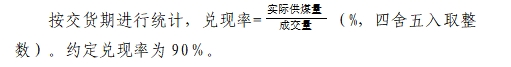 4.扣噸及罰沒噸數(shù)不參與兌現(xiàn)率計算,質(zhì)量指標也不參與月度或供貨期加權(quán)平均計算.